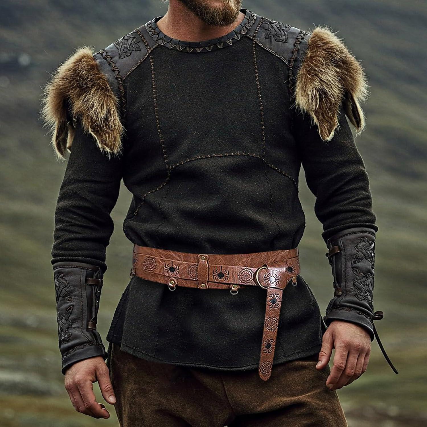 This wide belt is perfect for pairing with medieval Viking knight tunics, shirts, pants, and costumes.