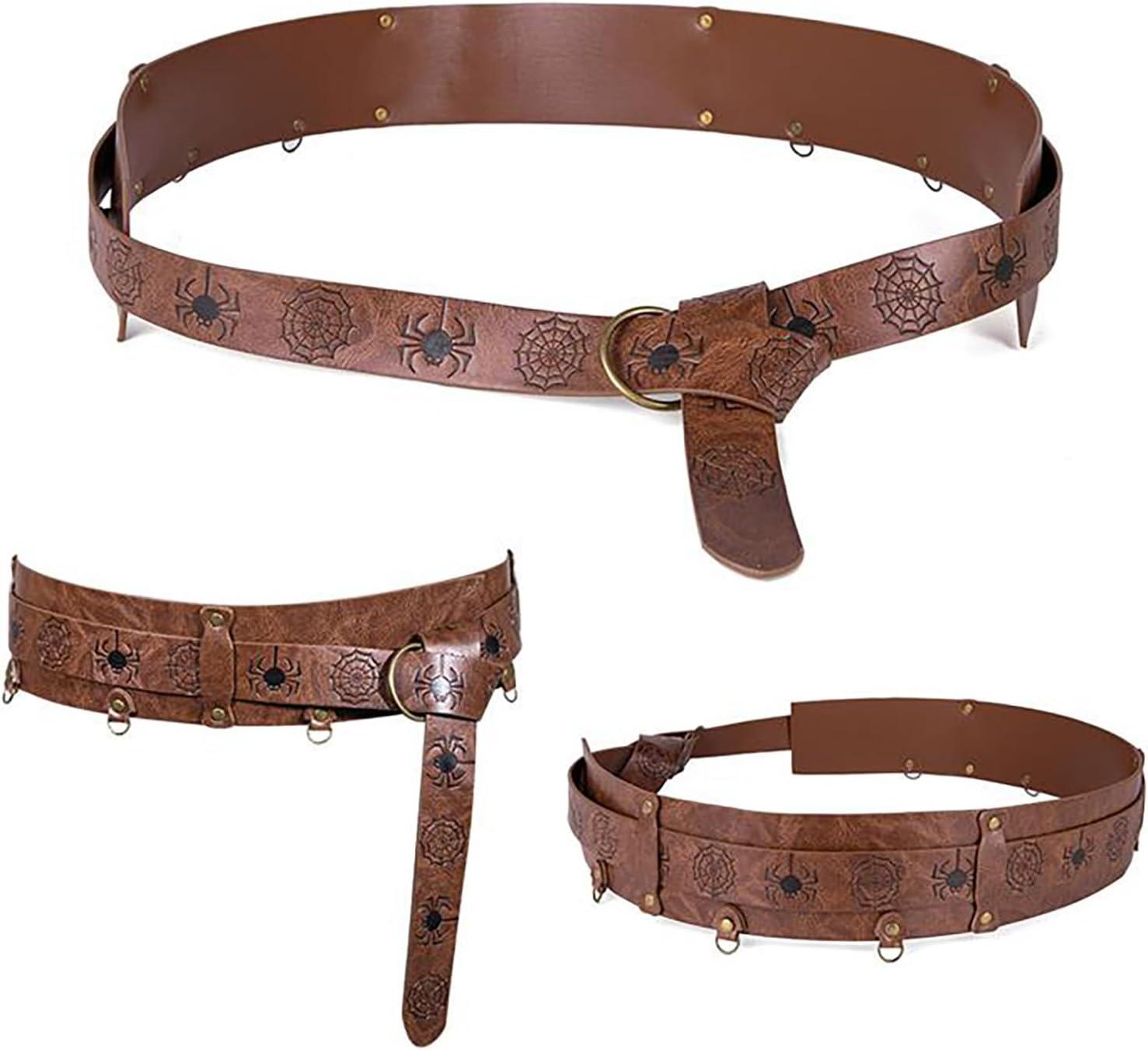 imageCharmian Mens Gothic Punk Medieval PU Leather Embossed O Ring Waist BeltBrown