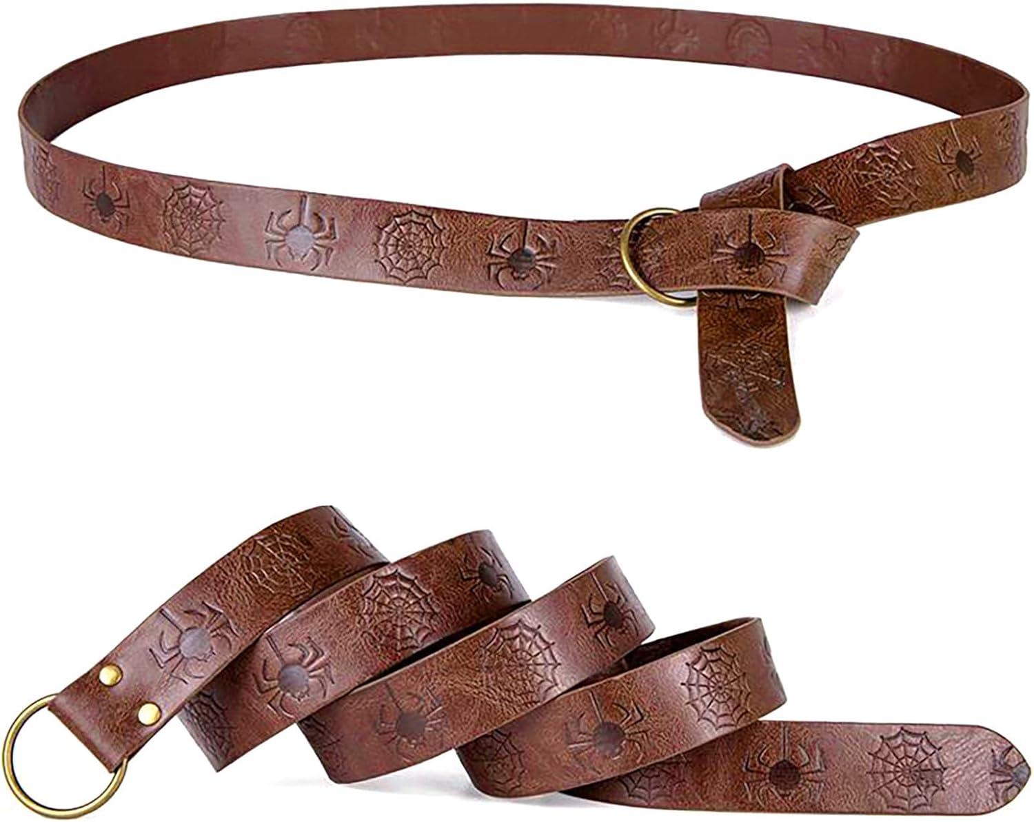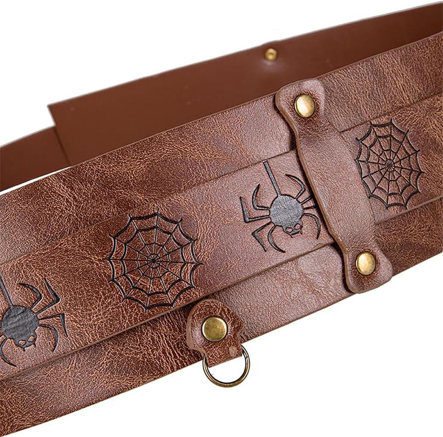 Charmian Men’s Gothic Punk Medieval PU Leather Embossed O Ring Waist Belt(Brown)