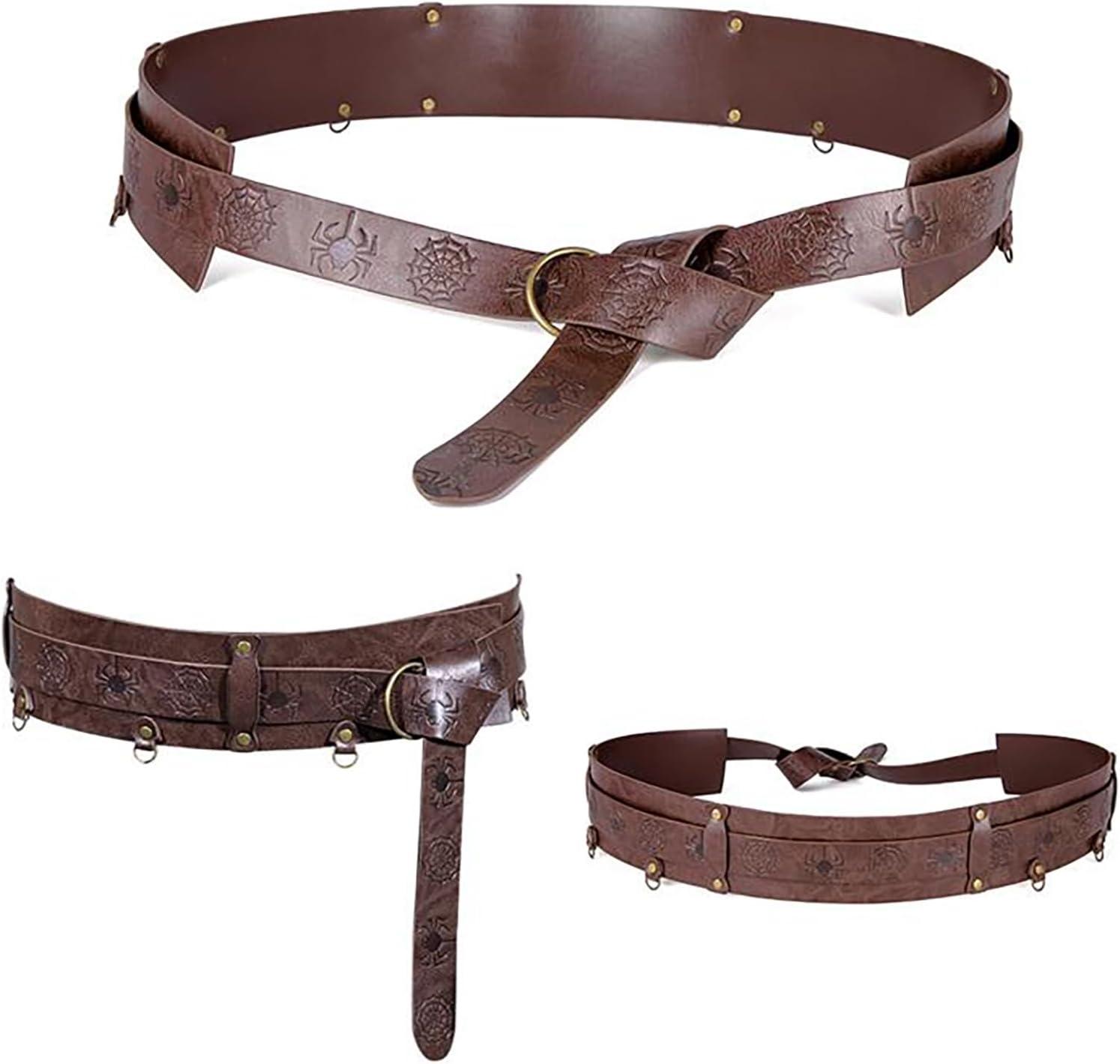 Charmian Men's Renaissance Medieval PU Leather Embossed O Ring Waist Belt