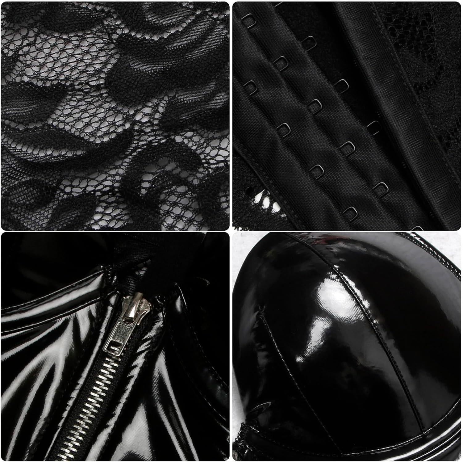 Charmian Women's Punk Gothic PU Leather Push Up Corset Bra Bustier Crop Top(Black-zipper)