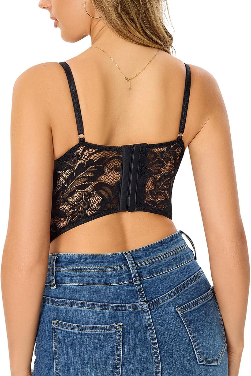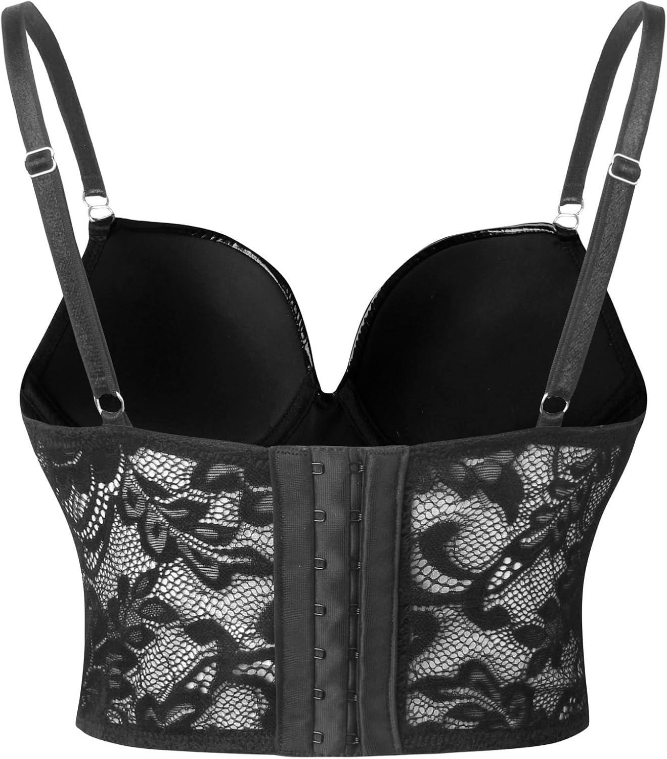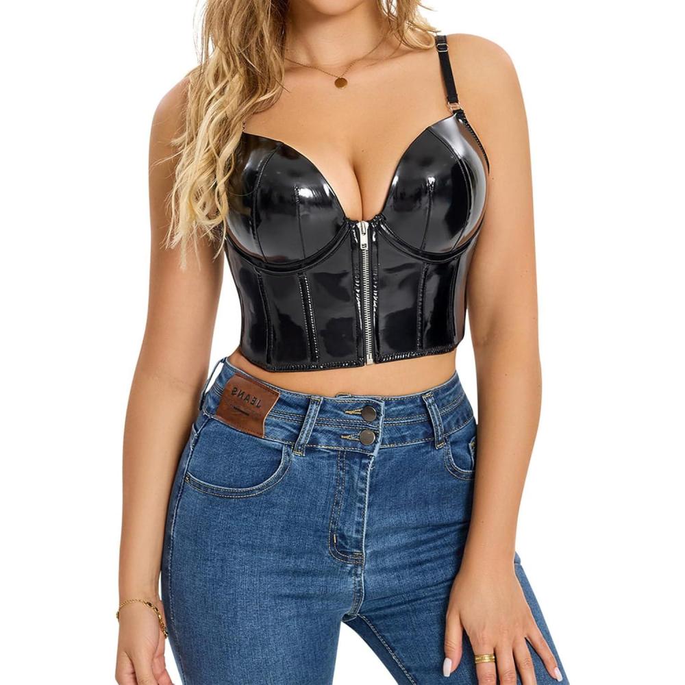imageCharmian Womens Punk Gothic PU Leather Push Up Corset Bra Bustier Crop TopBlackzipper