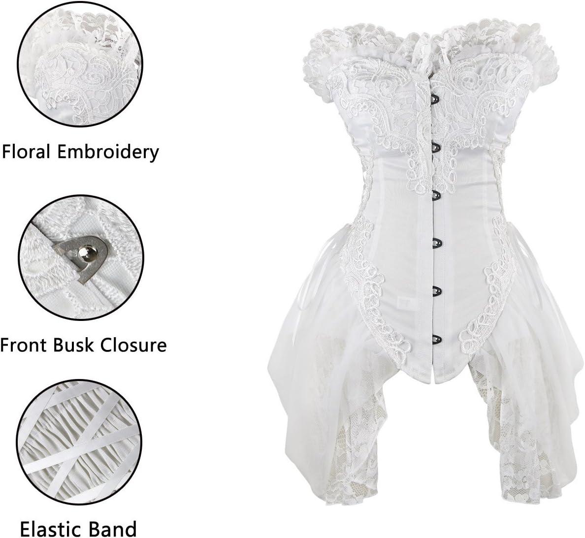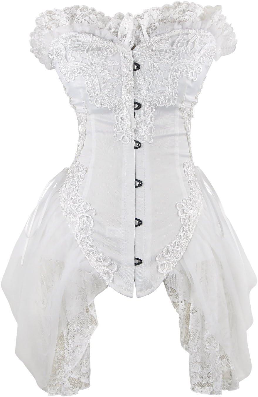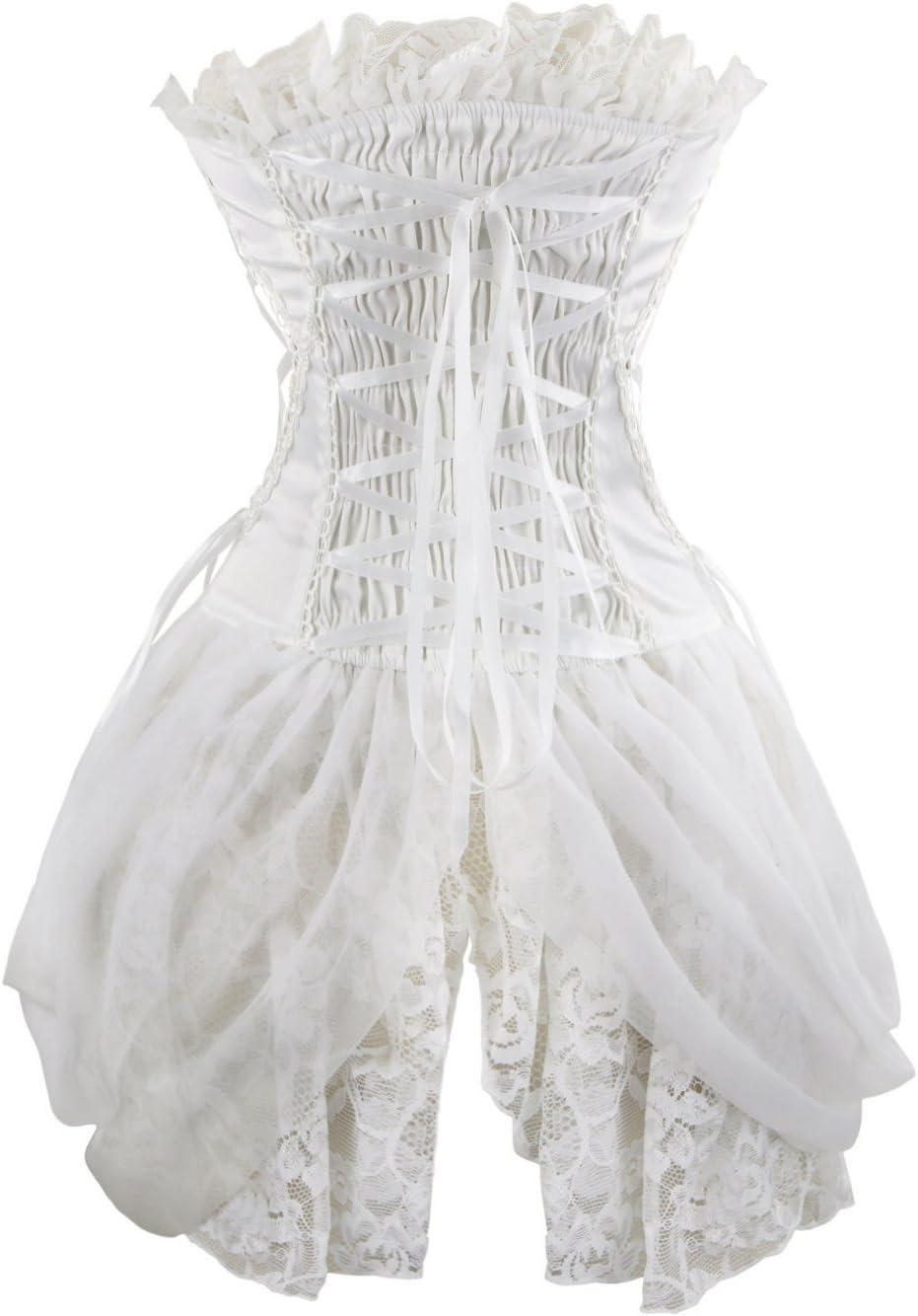Charmian Women’s Sexy Corset Bustier Dress Gothic Victorian Cosplay Party Outfit(White)