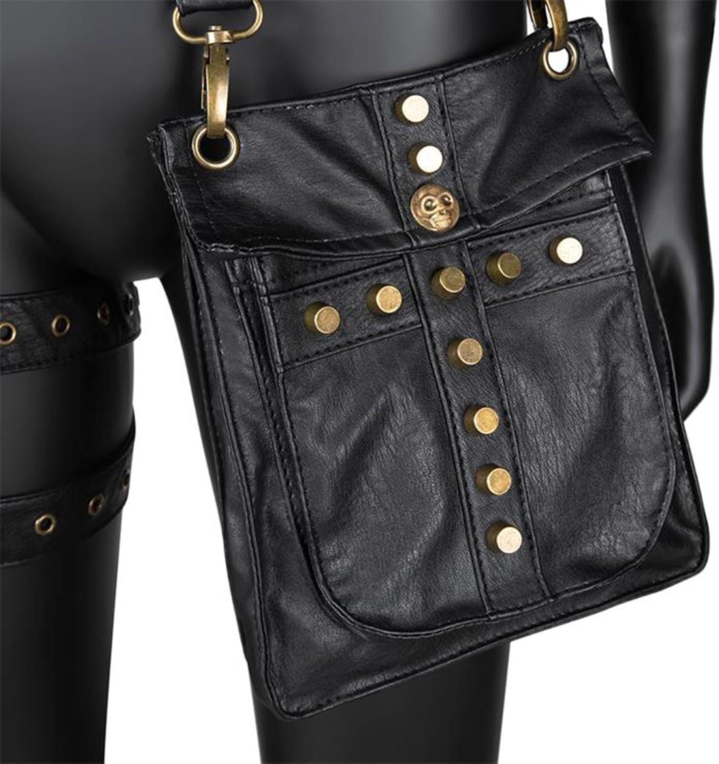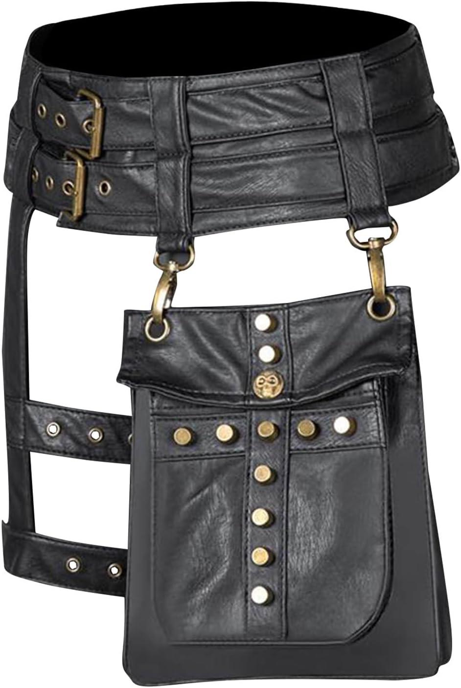 Charmian Women's Steampunk Gothic Leather Waist Belt Bag with Adjustable Strap