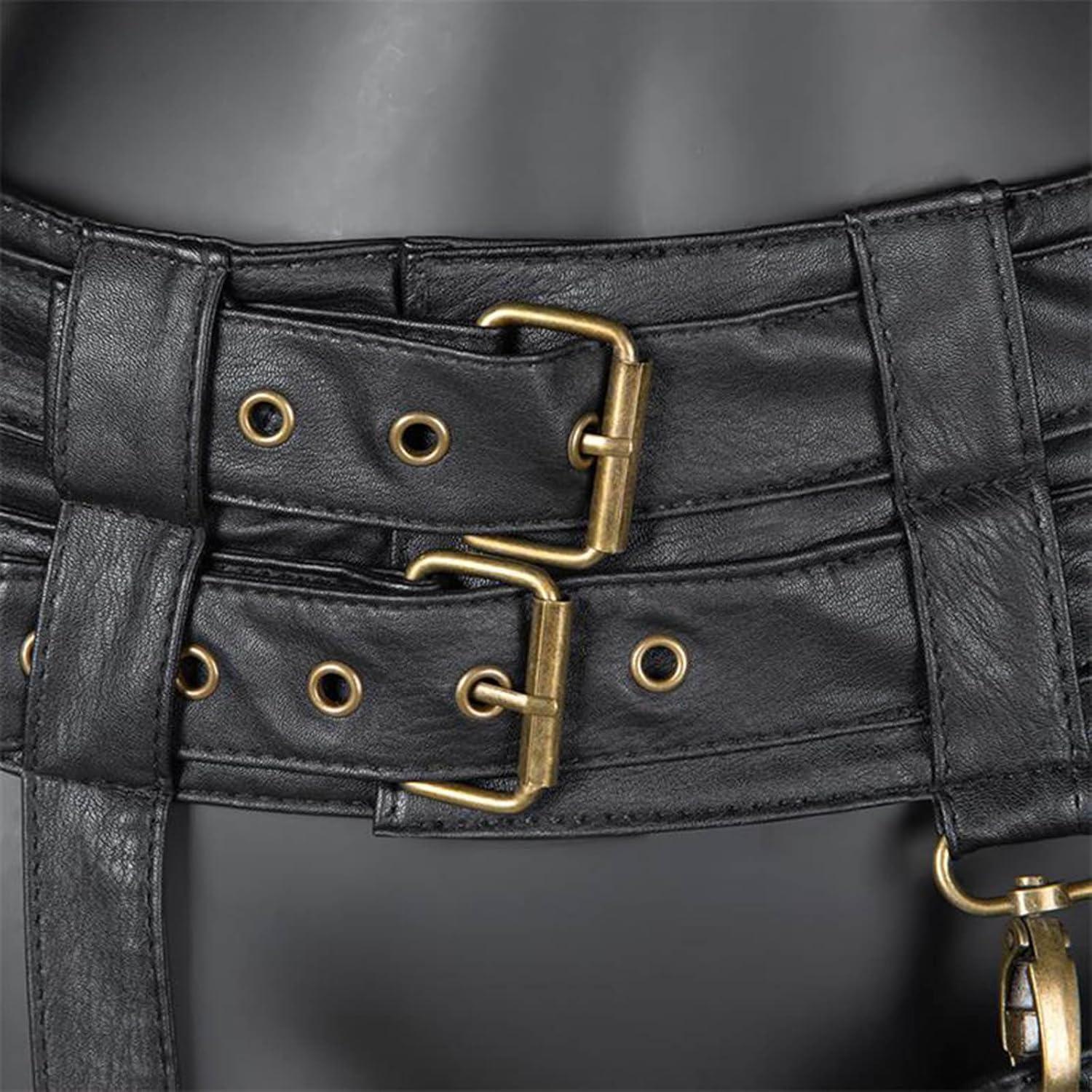 Special belt and punk design, adjustable front straps, leg straps, and a back lacing system for a tailored fit.