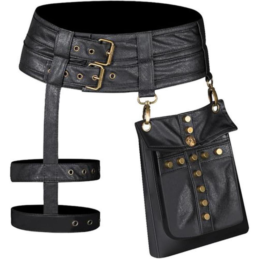Charmian Women's Steampunk Leather Waist and Thigh Belt with Detachable Pouch(Black)